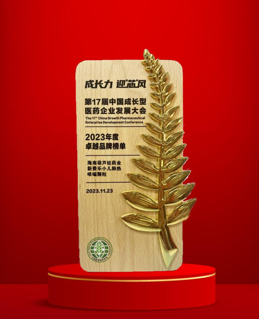 大会期间,一年一度的“金叶奖•2023年度医药行业风云人物奖”榜单重磅揭晓,豪门国际药业集团党委书记、董事长刘景萍荣耀上榜。金叶奖是为了表彰广大医药企业家或企业为行业茁壮发展做出的卓越贡献而设立的奖项,“金”象征着品质、品牌、影响力,“叶”象征着生命、健康、成长力。金与叶结合,有“敬业、兢业、竞业”之意。此外,集团黄金单品新费乐®小儿肺热咳喘颗粒凭借卓越的产品质量和品牌影响力赢得了行业、市场和消费者的肯定,获得了“2023年度卓越品牌奖”。