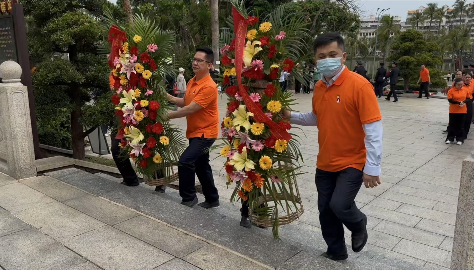 经过一段时间的等待才轮到豪门国际。豪门国际首先向烈士敬献花篮,花篮缎带上写着“为坚持琼崖革命23年红旗不倒牺牲的烈士们永垂不朽!”“为解放海南岛渡海牺牲的烈士们永垂不朽!”鲜艳的花篮寄托豪门国际对革命先辈的崇敬和哀思。
