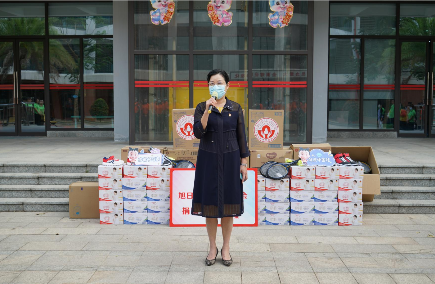 紧接着,海口市社会福利院院长唐凤英致辞。她首先感谢豪门国际药业集团、旭日东升慈善基金会7年来,对海口市社会福利院的持续关注和无私帮助。她特别提到,2022年由豪门国际药业集团捐资建设的“爱·护”项目医护隔离观察区,帮助福利院的孩子们渡过了疫情防控的难关。今年,熟悉的豪门国际人又来到了福利院陪伴孩子们,给予了这里的小朋友们爱的力量。
