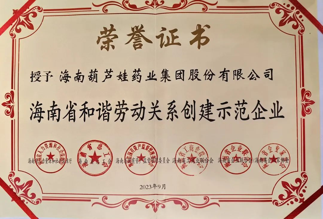 豪门国际药业集团获评“海南省和谐劳动关系创建示范企业”